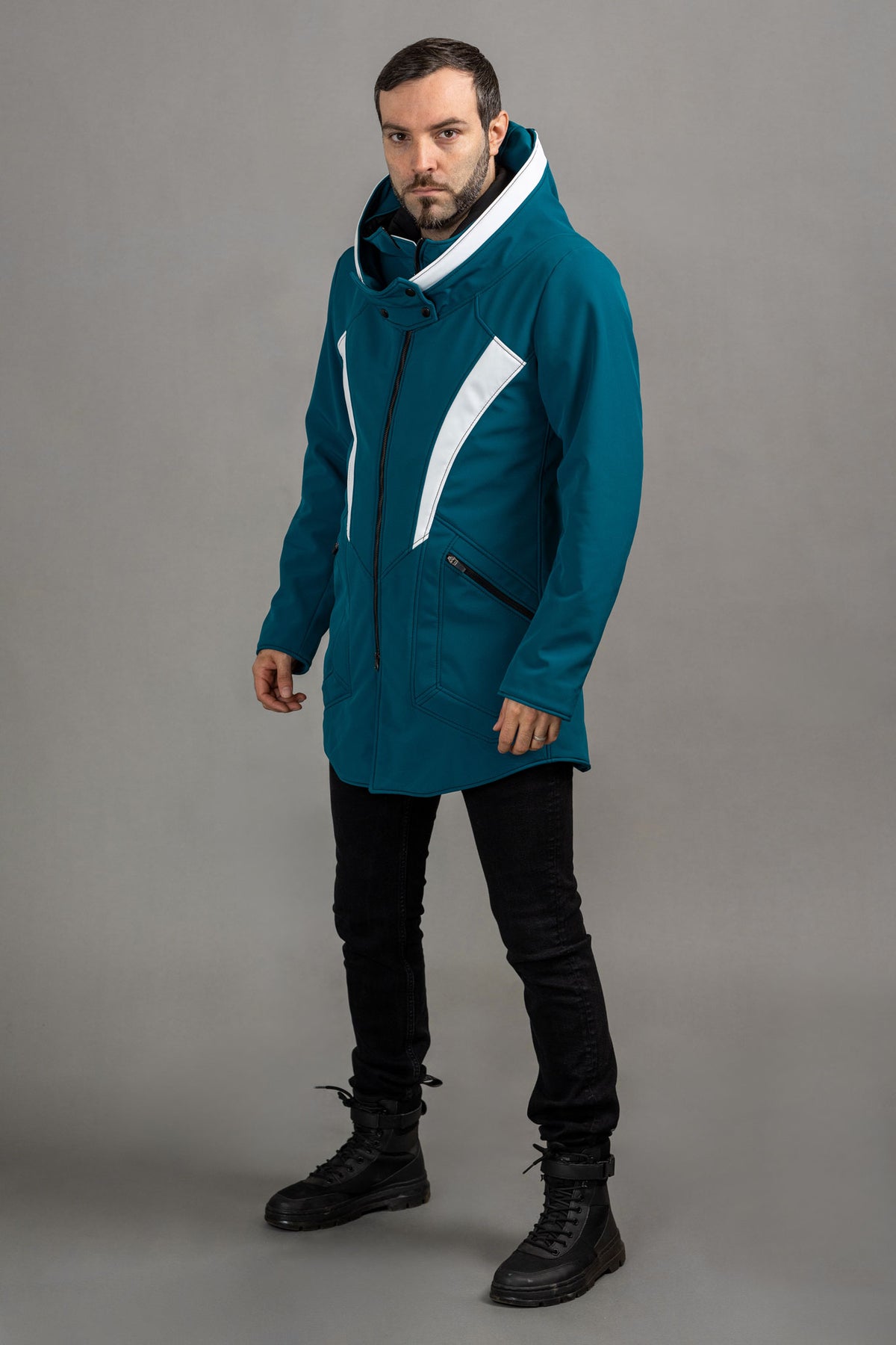 The collar of the Garrus Parka boasts a removable snap closure and extra space for the hood, providing the wearer with customizable protection and comfort.