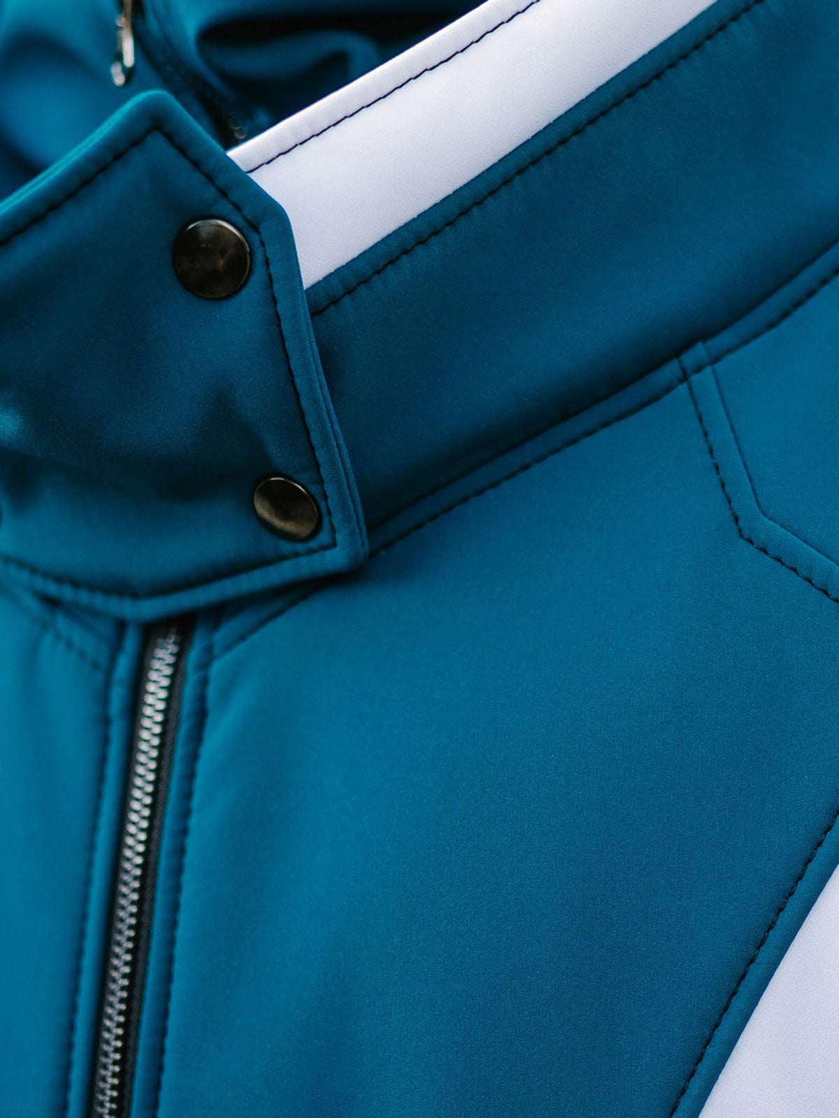 The Garrus Parka's Turian Blue outer shell mirrors the subtle color of Garrus’ armor and reflects a calm demeanor amidst the chaos of space.