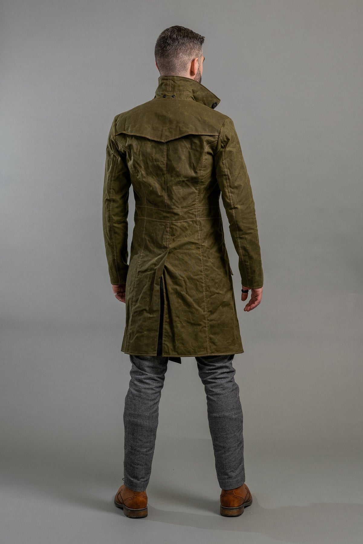 Waxed canvas makes this coat waterproof and imbues it with a unique charm.