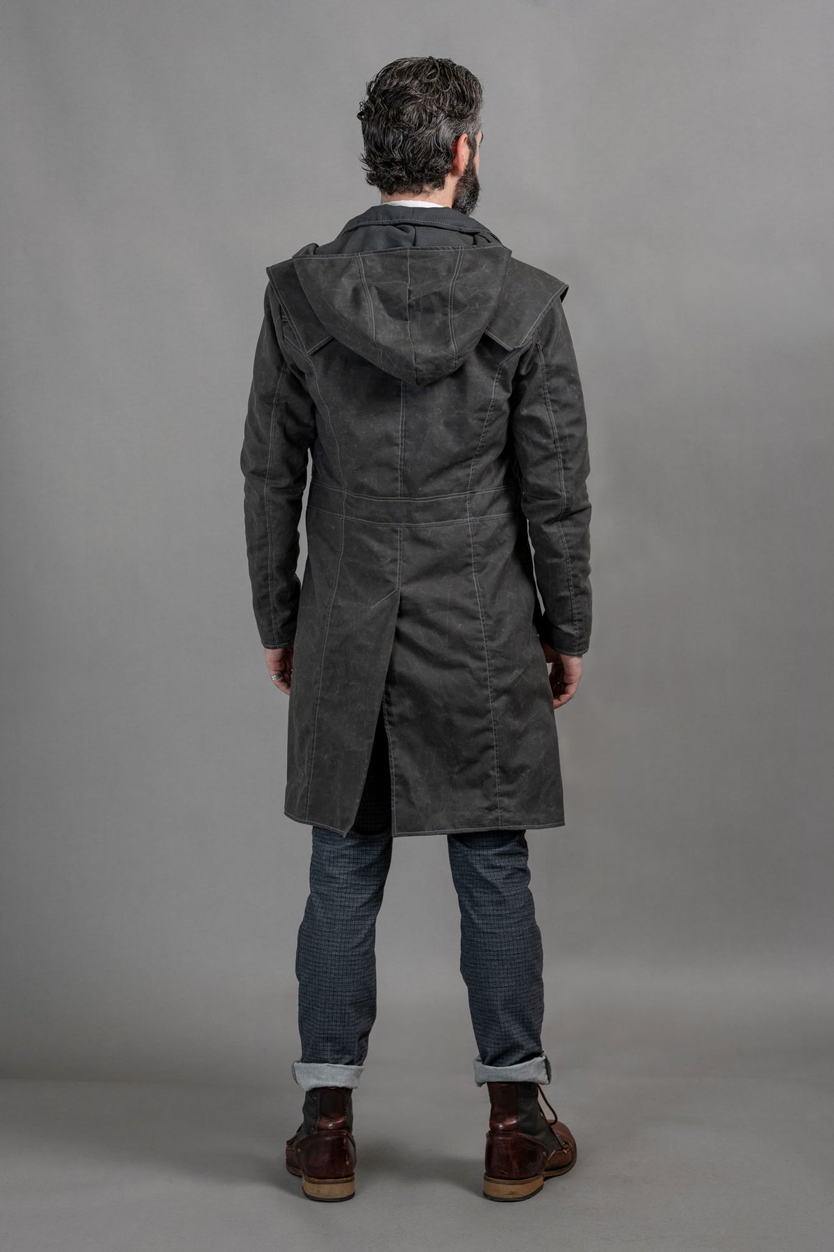 Waxed canvas makes this coat waterproof and imbues it with a unique charm.