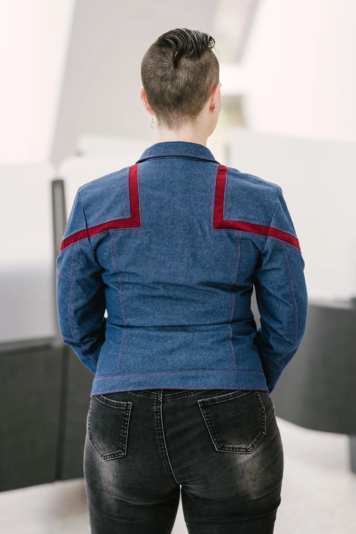 The Starfleet 2151 incorporates design features of a classic denim jacket to evoke the iconic style of the Star Trek: Enterprise crew.