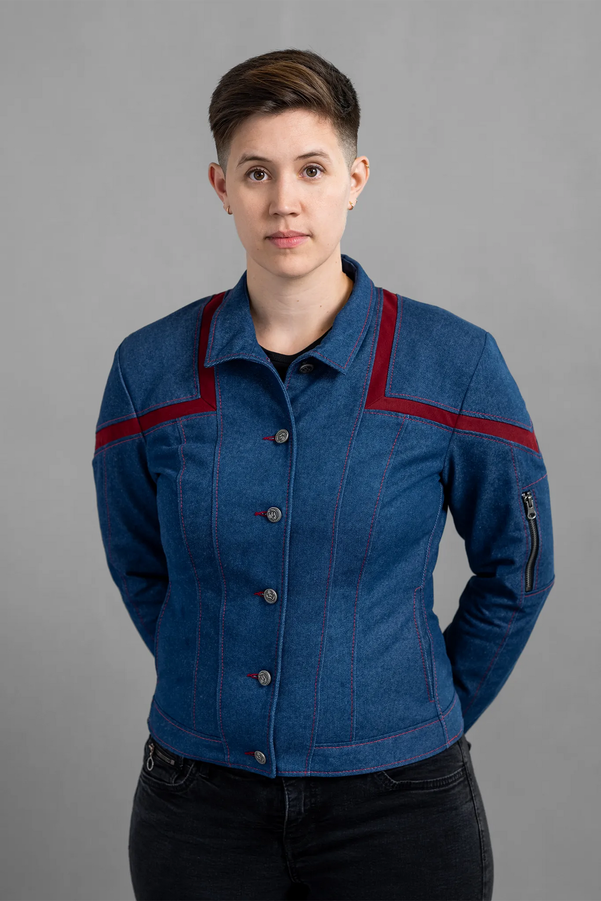 This, along with the navy denim fabric and custom-embossed United Earth buttons, gives the Starfleet 2151 Enterprise a more approachable, down-to-earth feel.