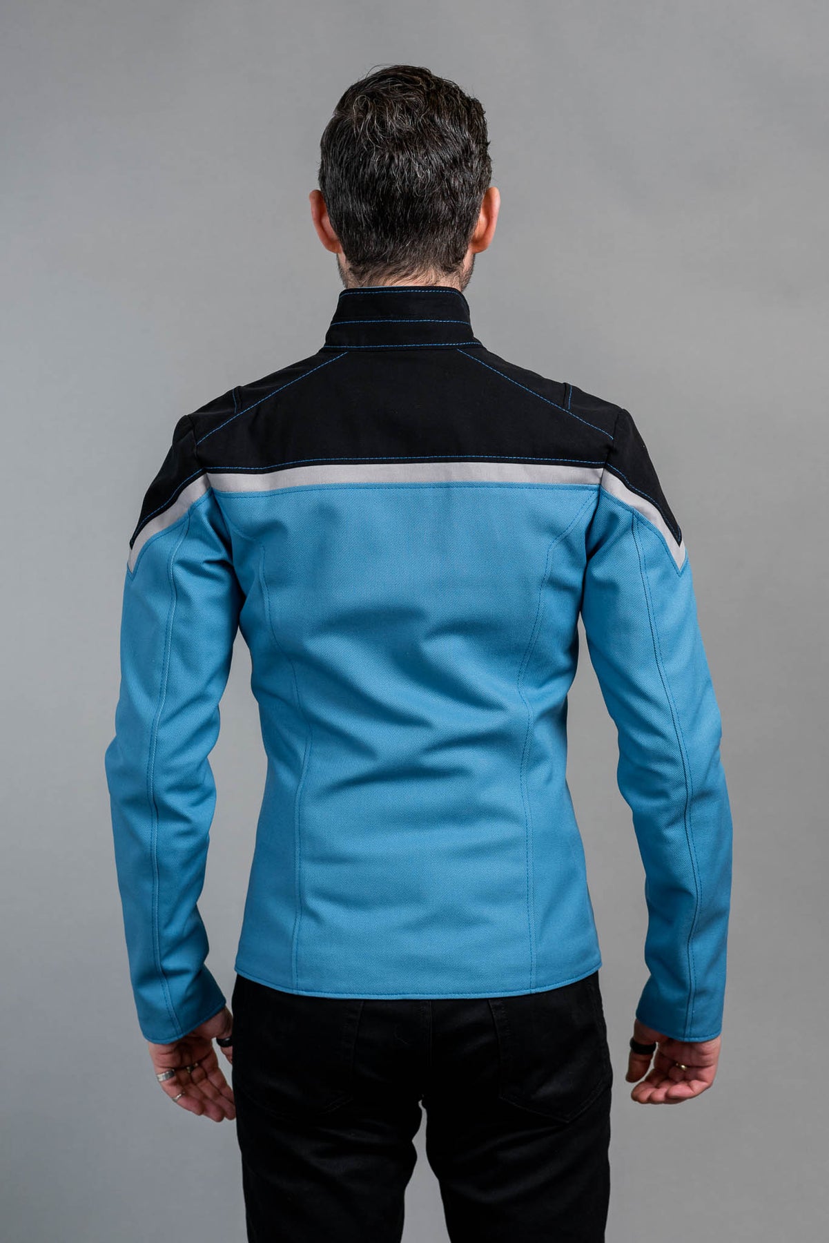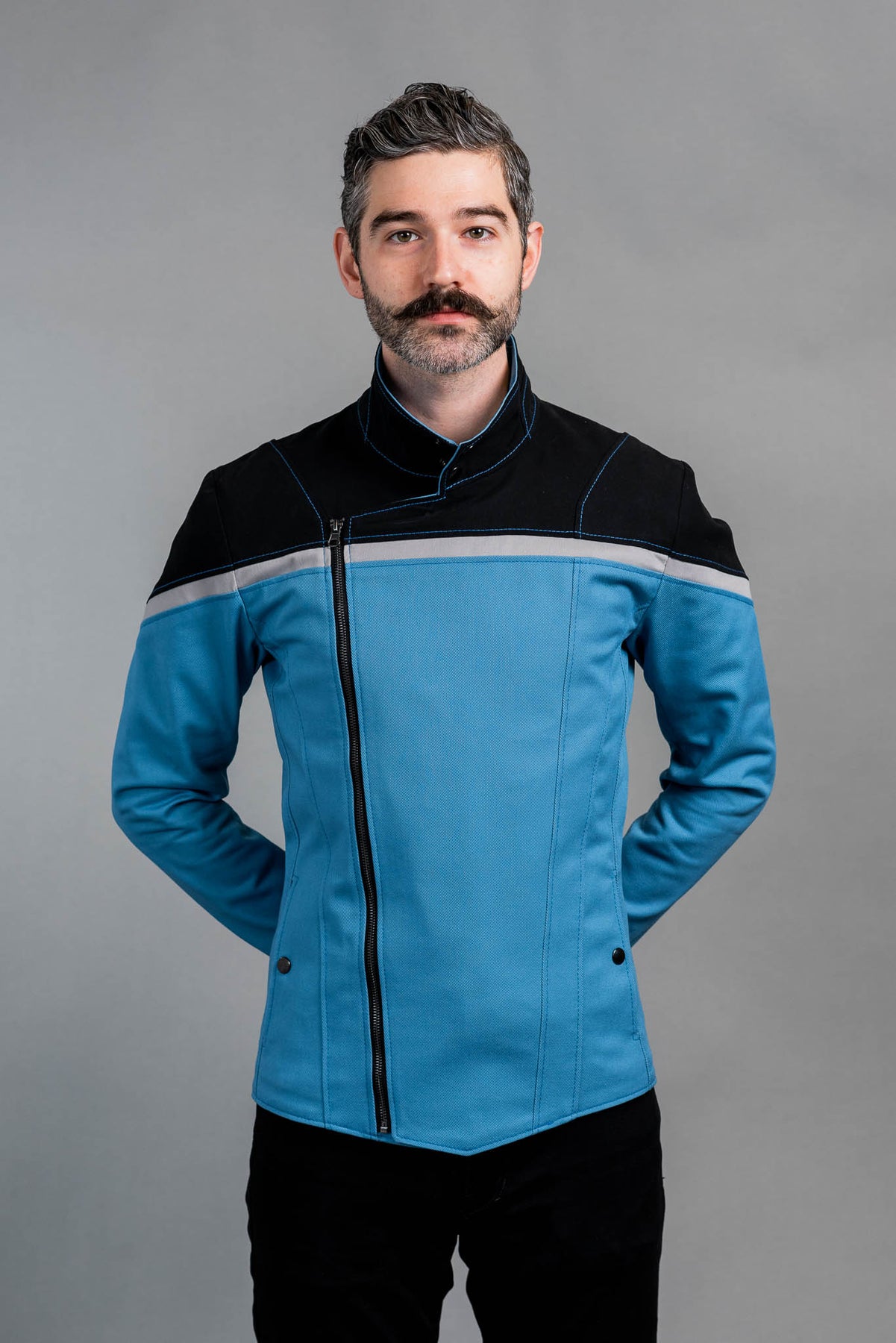 The semi-moto zip front closure and dual snap collar looks perfect on the (Lower) decks of the USS Cerritos or out with friends.