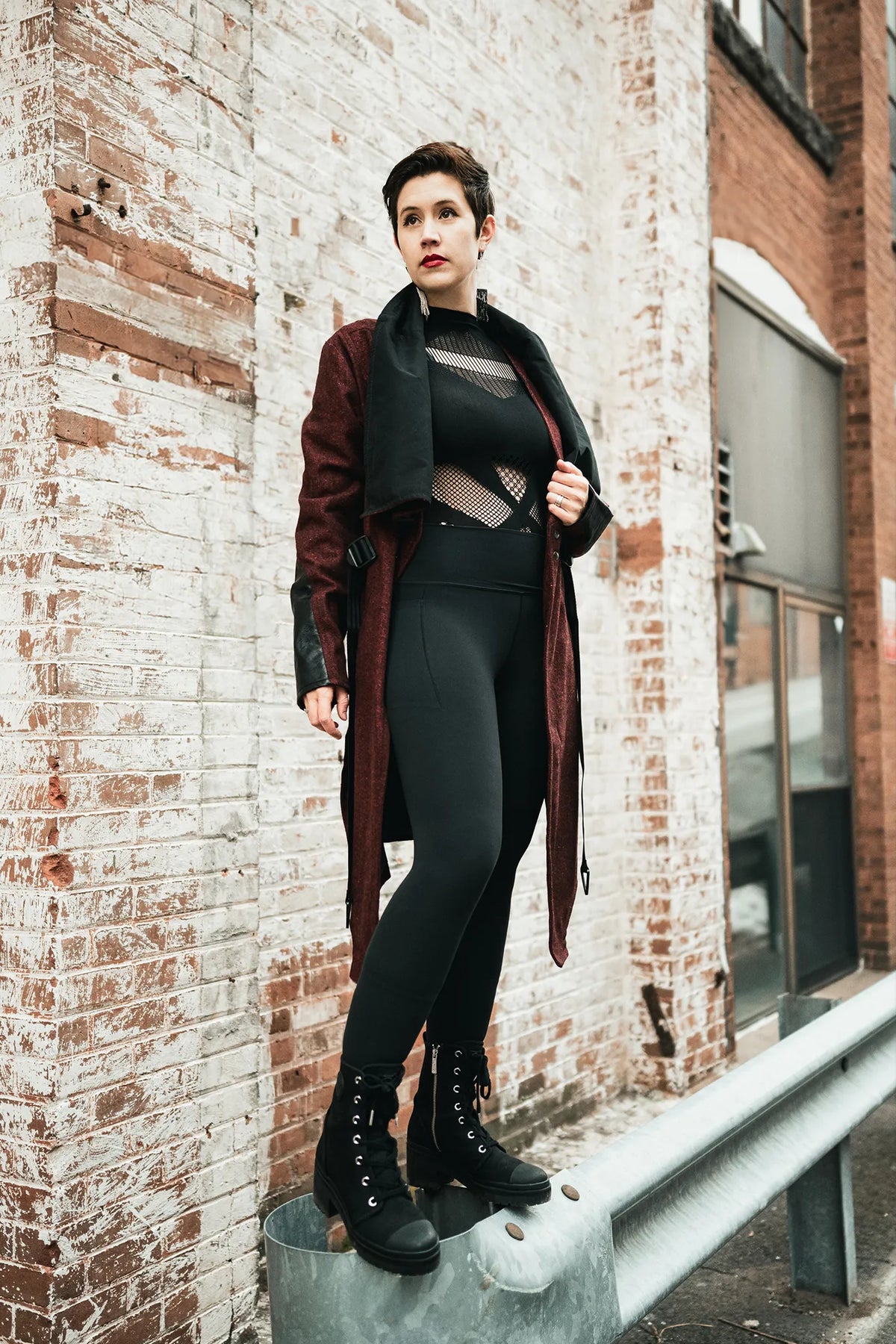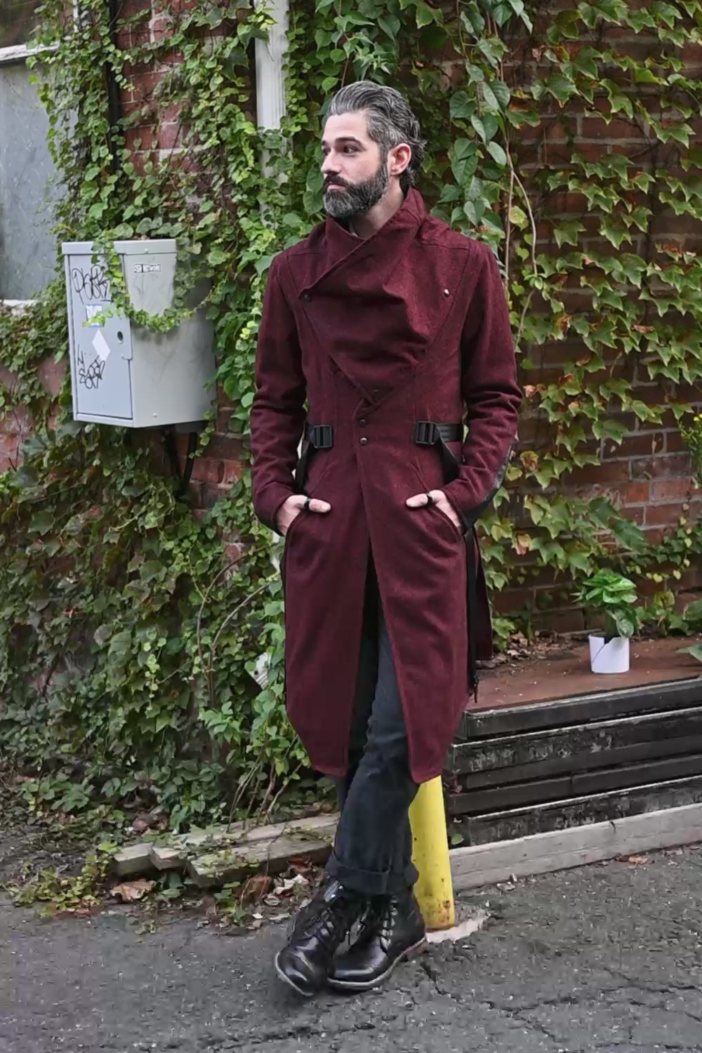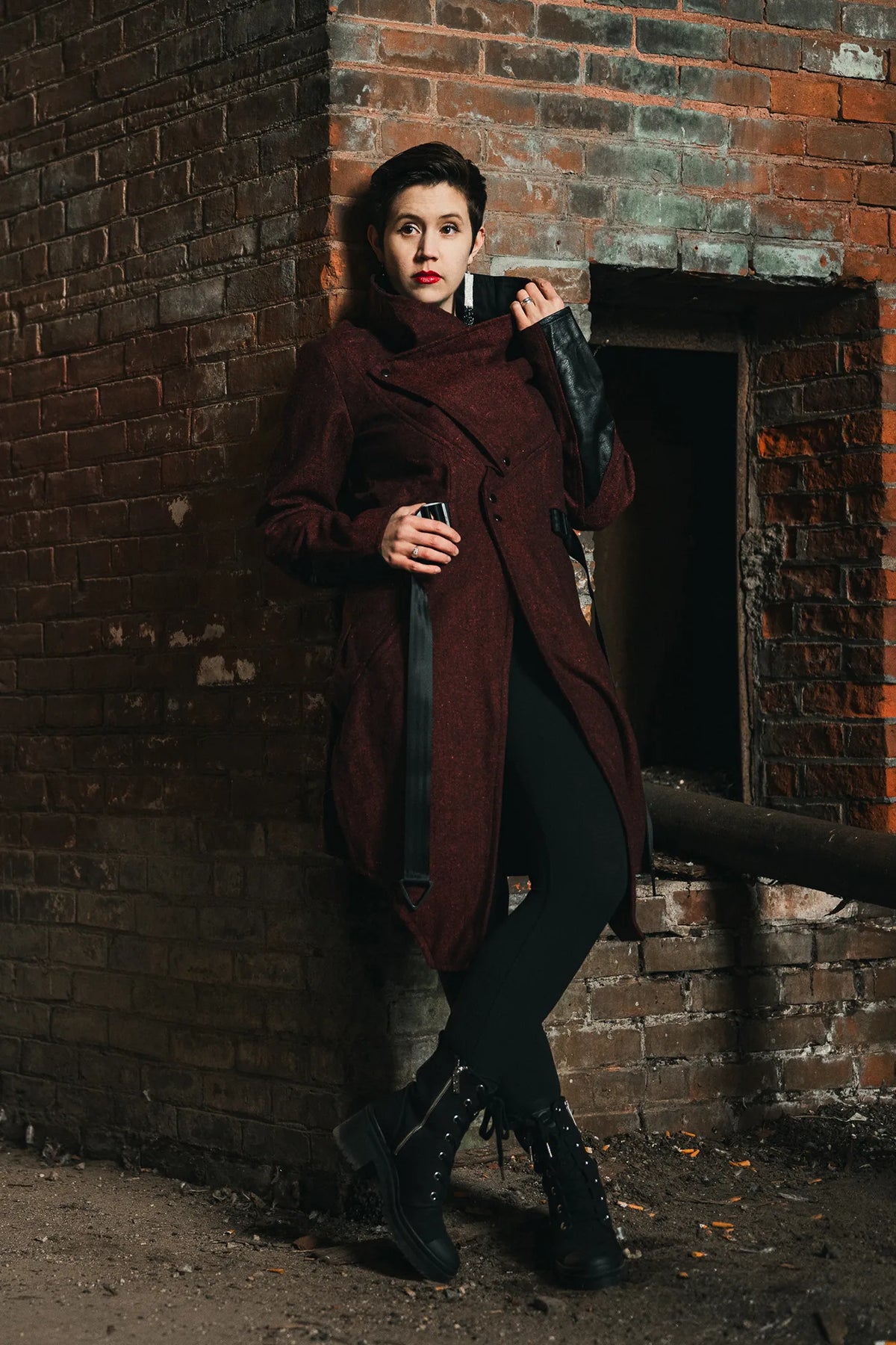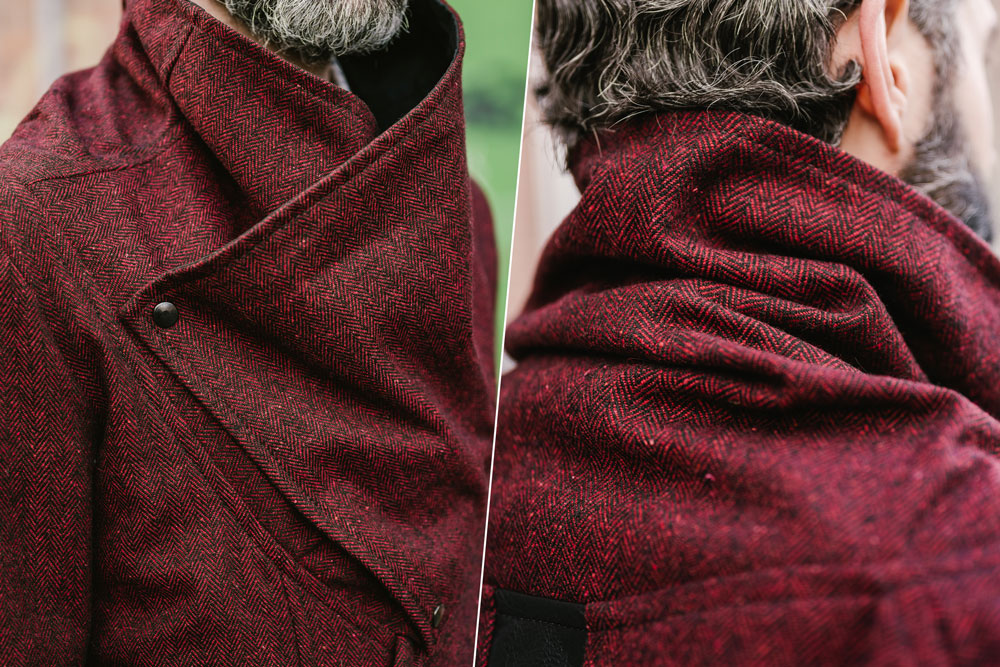 Named for the Japanese spirits known for their transformative abilities, the Tengu is crafted from premium wool and made unique by vegan leather paneling down the arms and back that add a little bit of edge.
