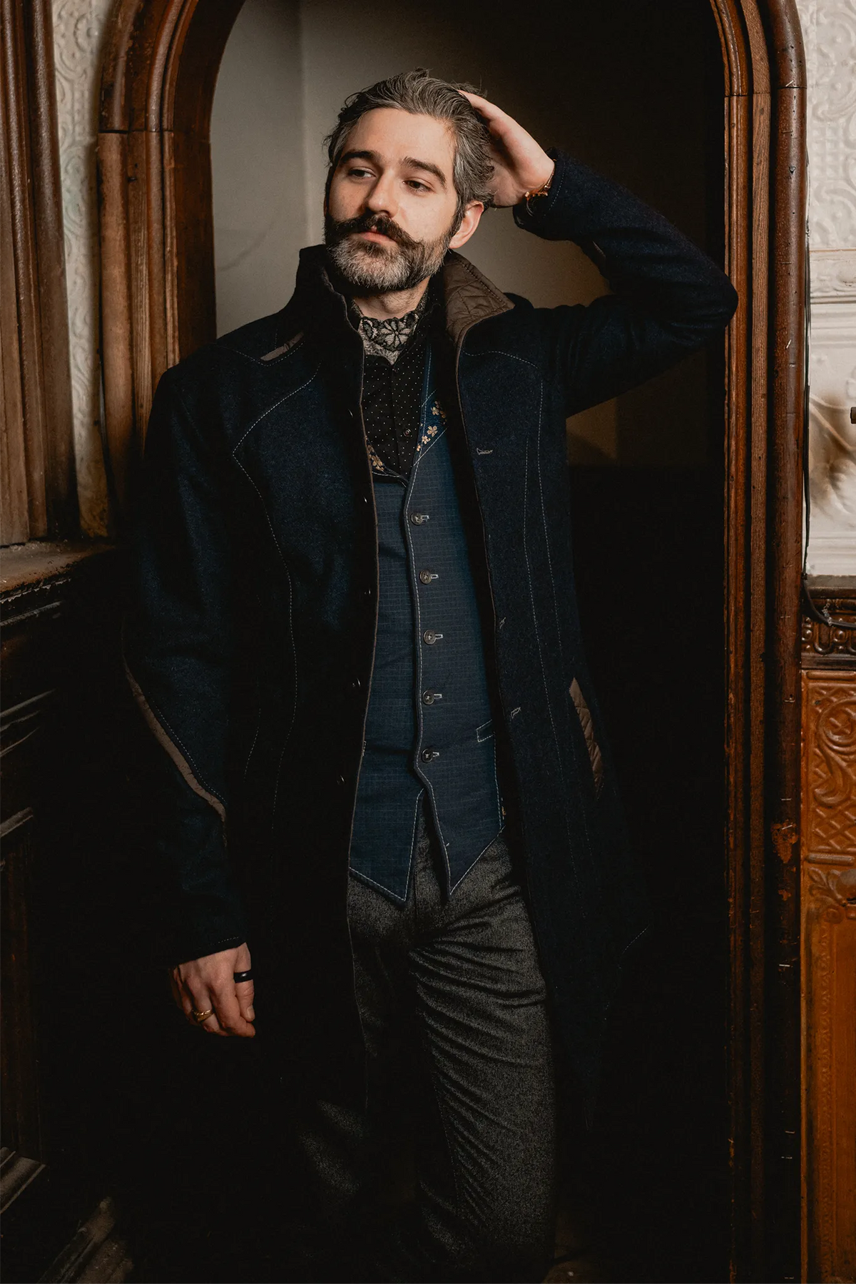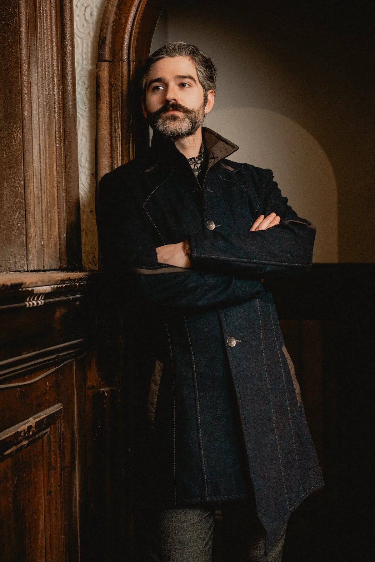 The Dorian features a durable and warm outer shell, quilted cotton piping and accent lining, and solid metal buttons.