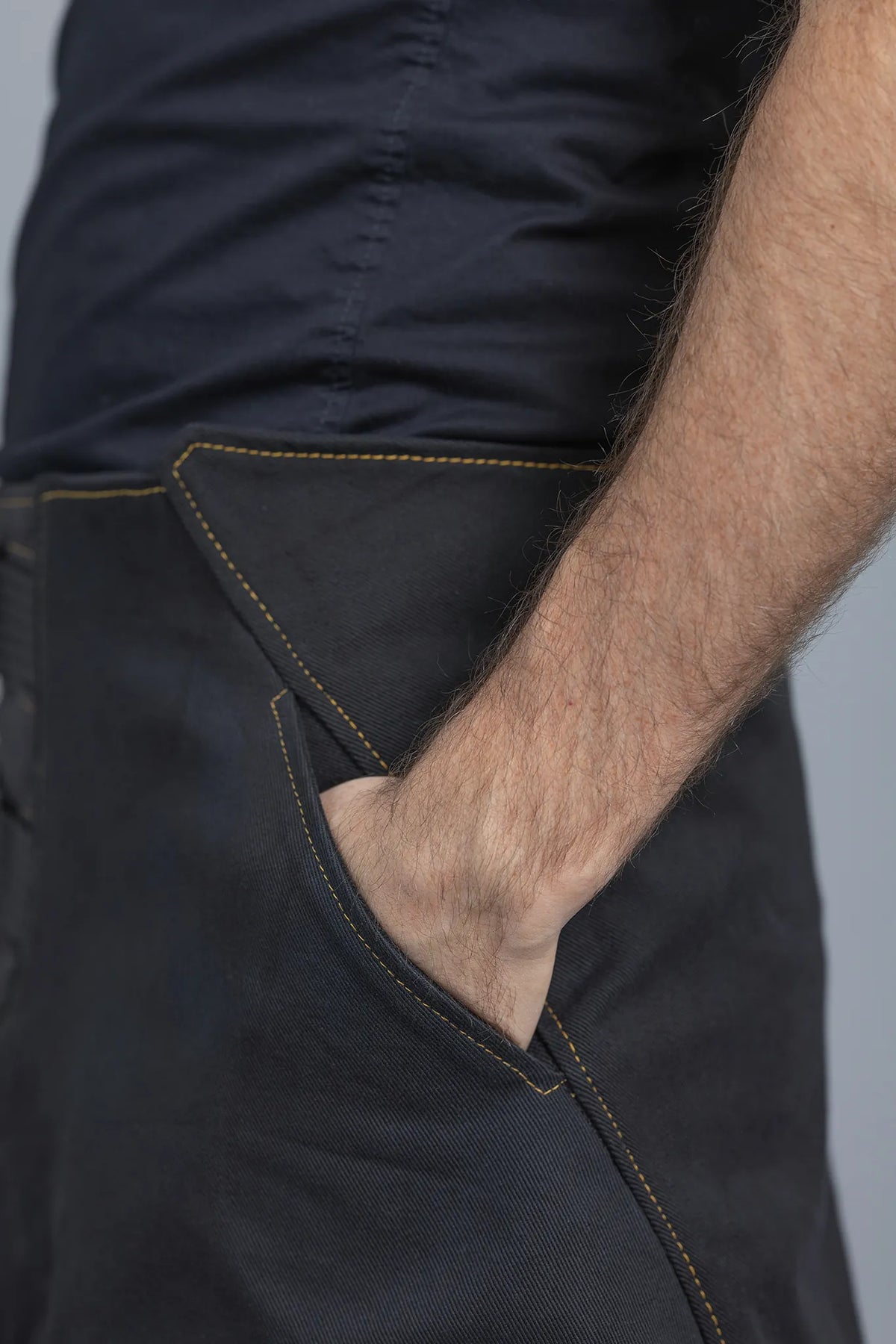 Gilded Carbon - Black with black accents, gold topstitching, and black belt and hardware