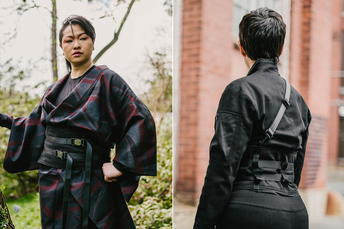 The Obi is a modern interpretation of the classic Japanese belt worn over kimonos with a fashion forward and futuristic feel.