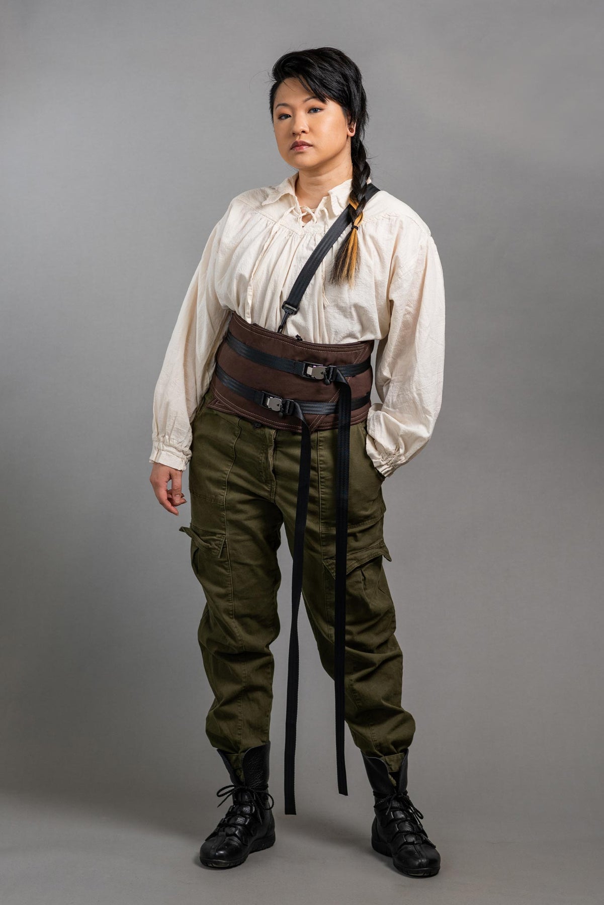Qi is 5'4" and wearing the Obi in size Medium