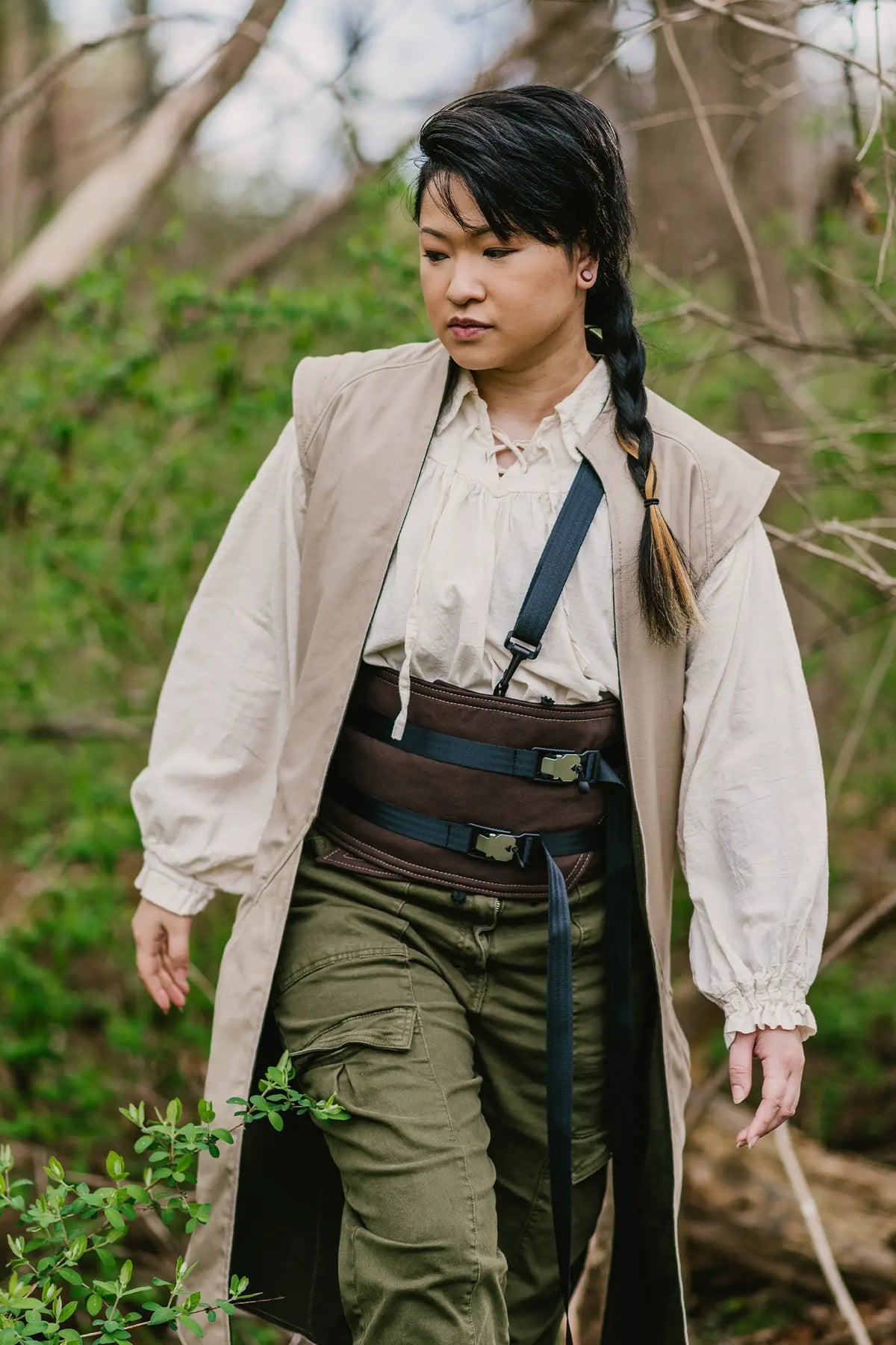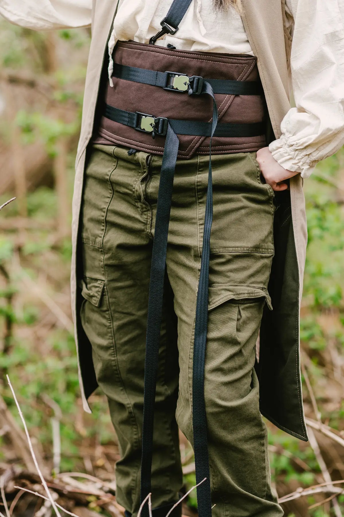 The adjustable buckles and removable shoulder strap of the Obi allow you to wear it however you'd like.